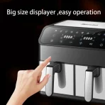- Independent Controls for Dual Baskets: Set different temperatures (80°C–200°C / 176°F–392°F) and timers (0–60 minutes) for each basket. Cook a frozen pizza at 200°C while roasting veggies at 160°C, all in one go.