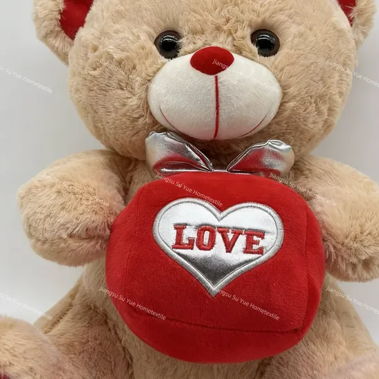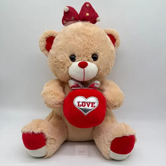 Beige Teddy Bear with Santa Glasses & Love Heart – Festive Plush Gift for Valentine’s Day & Christmas