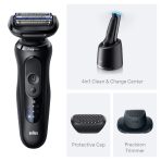 Braun’s Beard Shaver Series 5 offers a fast, easy & protective shave, ideal for daily grooming. The 3 AquaFlex Blades adapt to facial contours for a close, clean shave. SmartMotor adjusts to beard density, while SkinGentle Foil and SmoothShave Blade protect skin and cut longer hairs in fewer strokes. With EasyClean and Wet & Dry use, it offers up to 50 minutes of cordless runtime. Includes Precision Trimmer, 4in1 Cleaning Center, and protective cap.