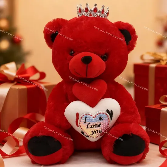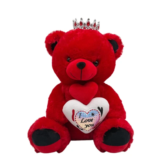 Red Crown Teddy Bear with “I Love You” Heart – Romantic Valentine’s Day Stuffed Animal Gift