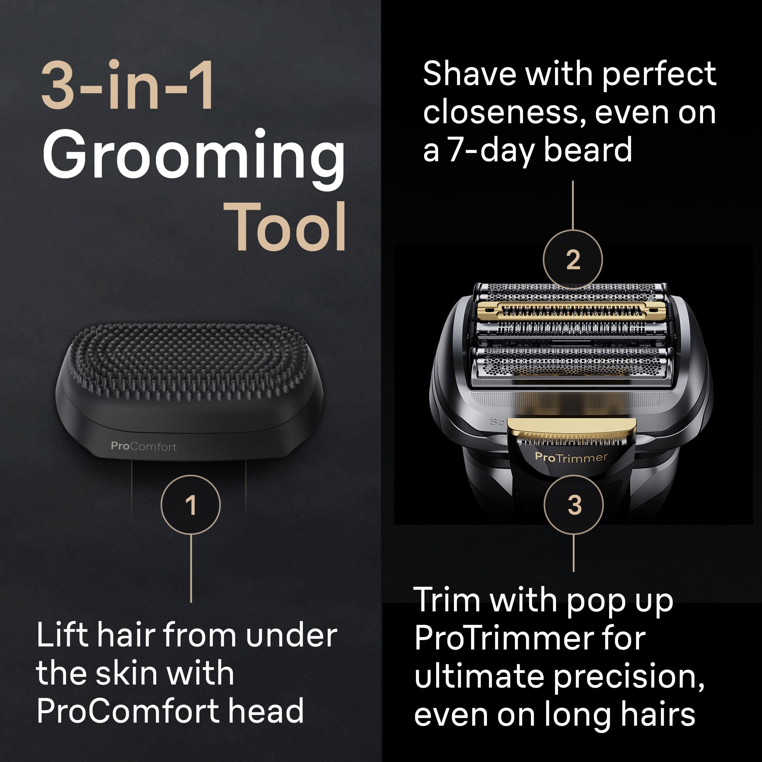 No matter 1, 3, or 7-day beard: 5 perfectly synchronized shaving elements deliver exceptional efficiency and skin comfort, even on the longest & trickiest hair in every stroke.